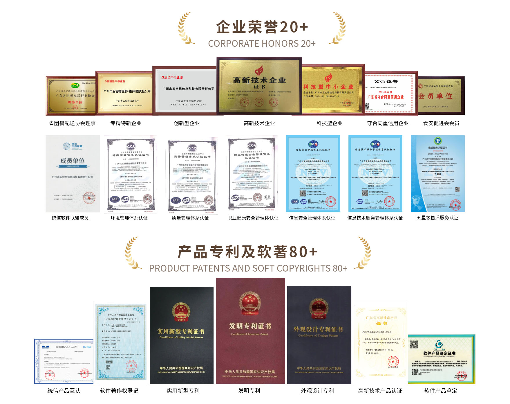 戈子科技先后獲得高新技術企業、守合同重信用企業、專精特新企業等企業認定,連續多年榮獲“團餐行業優秀供應商”稱號,以過硬的綜合服務能力通過ISO各項管理體系及五星級售后服務認證,同時在多種支付場景中獲得了行業的認可,與各類支付品牌、通信運營商品牌、眾多銀行單位達成深度合作關系。