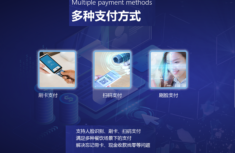 戈子科技智慧食堂可對接食堂一卡通系統(tǒng),實(shí)現(xiàn)刷卡支付;為滿足現(xiàn)代人消費(fèi)習(xí)慣,戈子科技智慧食堂可使用微信、支付寶等掃碼支付;戈子科技智慧食堂同時(shí)擁有先進(jìn)的金融級AI人臉識別技術(shù),員工在后臺(tái)錄入自己的人臉信息后即可使用人臉識別支付,人臉識別支付人均用時(shí)低于0.3秒,體現(xiàn)該技術(shù)的超高速識別。多種方式聚合支付的方式大幅度降低了就餐高峰期時(shí)的排隊(duì)等待壓力,總體提升企業(yè)食堂運(yùn)營效率,提高員工就餐的便利性。