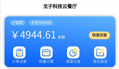 ②點擊“快速充值”按鈕,可進入現場充值飯卡頁面
