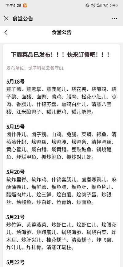 首頁點擊“食堂公告”進入,或者點擊新公告發布時,首頁頂部航條