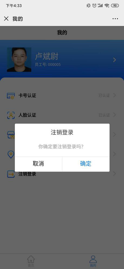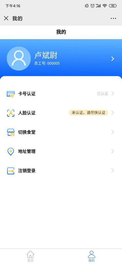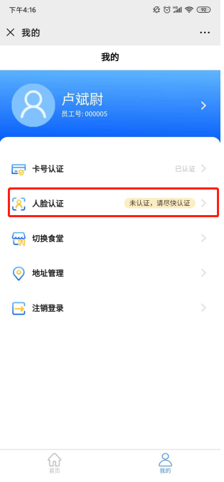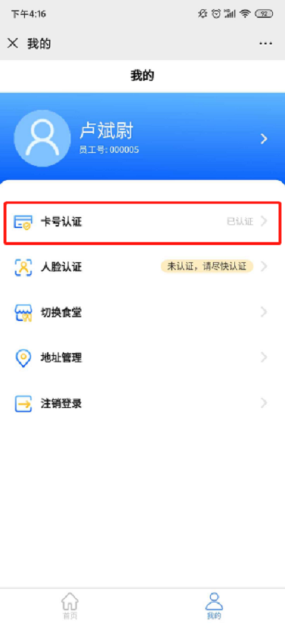 ②若顯示“未認證,請盡快認證”,則點擊可輸入姓名、工號、卡號進行綁定認證